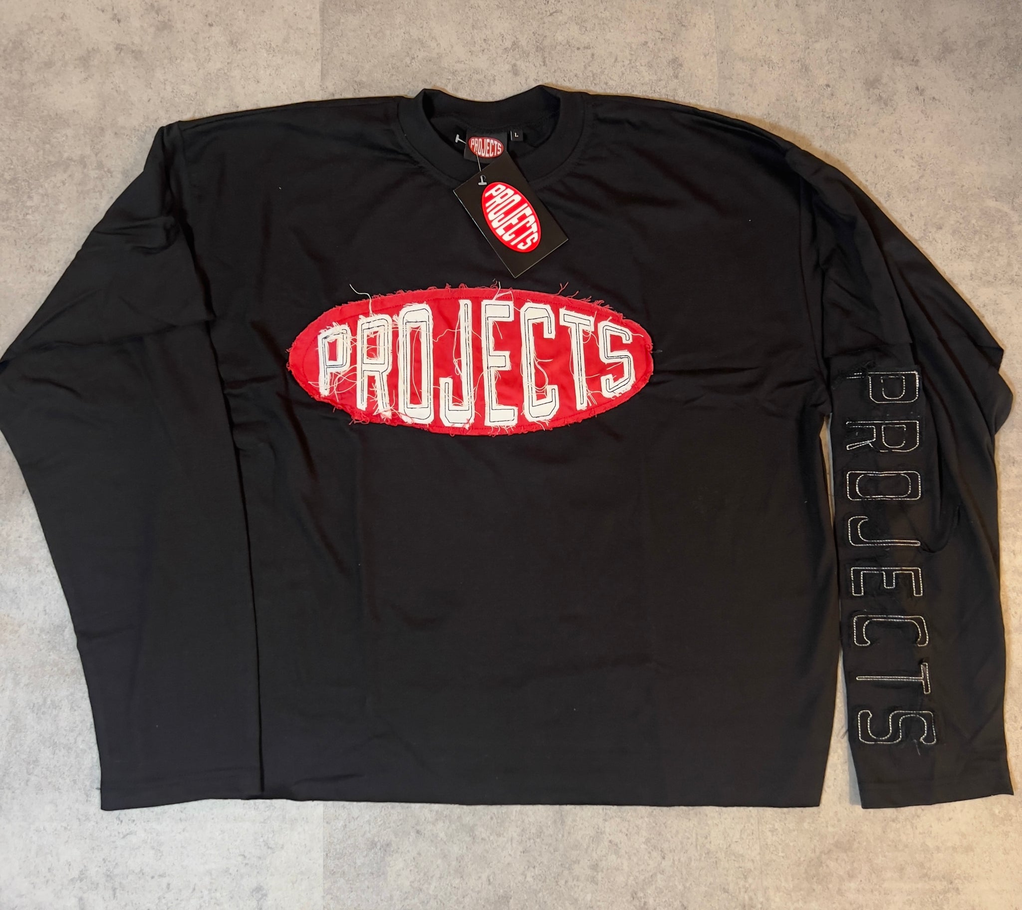 Distressed embroidery on chest and sleeve screenprint logo on back